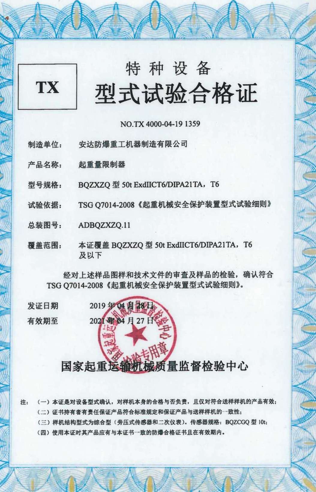起重量限制器 TX型式試驗合格證