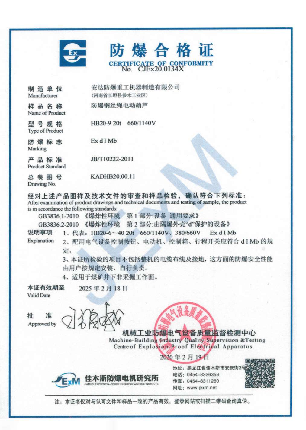 » 防爆鋼絲繩電動葫蘆 防爆合格證