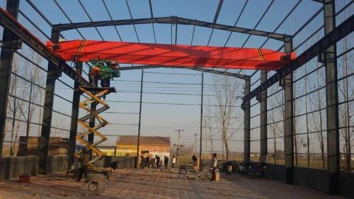 橋式起重機是橫架于車間、倉庫和料場上空進行物料吊運的起重設(shè)備。由于它的兩端坐落在高大的水泥柱或者金屬支架上,形狀似橋。橋式起重機的橋架沿鋪設(shè)在兩側(cè)高架上的軌道縱向運行,可以充分利用橋架下面的空間吊運物料,不受地面設(shè)備的阻礙。它是使用范圍最廣、數(shù)量最多的一種起重機械。