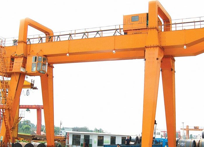 它的金屬結構像門形框架,承載主梁下安裝兩條支腳,可以直接在地面的軌道上行走,主梁兩端可以具有外伸懸臂梁。
