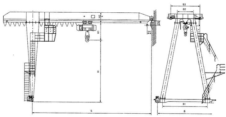 電動葫蘆半門式起重機結構簡圖: