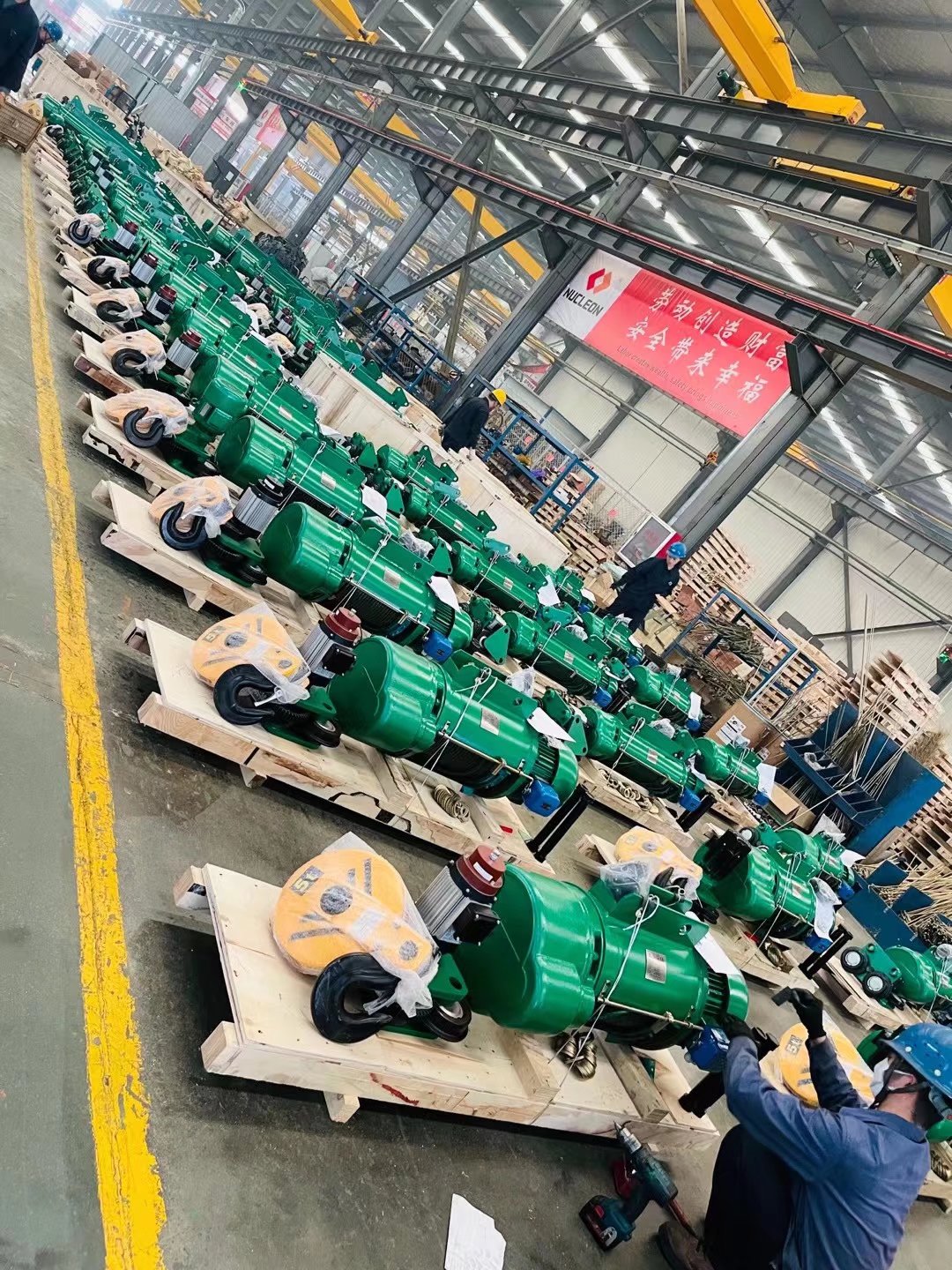 本公司主要生產產品有:(1)起重機類: 天車/天吊/行吊/行車、單梁起重機、雙梁起重機、電動葫蘆雙梁起重機、 門式起重機 、半門式起重機、懸臂起重機、壁栓式懸臂起重機、旋臂起重機、LX懸掛起重機、LH葫蘆雙梁起重機、花架門式起重機、雙梁抓斗起重機、QD吊鉤橋式起重機、QD冶金鑄造起重機、QE雙小車吊鉤橋式起重機、MH單主梁葫蘆門式起重機、MG雙橋吊鉤門式起重機、L單主梁門式起重機、升降平臺類非標起重機的制造、改造、安裝、維修、保養等。 二、配套件類:各類國產進口電動(手動)葫蘆、防爆電動葫蘆、冶金電動葫蘆.雙制動電動葫蘆、雙速電動葫蘆、環鏈電動葫蘆、微型電動葫蘆、手拉葫蘆、單軌小車、電磁(永磁)吸盤、電纜卷筒、電動小車、電控柜、卷揚機、空壓機、電動機、減速機、液壓制動器、聯軸器、變頻器、控制器、遙控器、保護器、電阻器、緩沖器、安全滑線、電線電纜、抓斗抓具、吊具索具夾具、吊帶、吊鉤、起重鏈條.車輪組、公司有專業維修人員為客戶;維修,安裝,調試,檢修保養等業務。