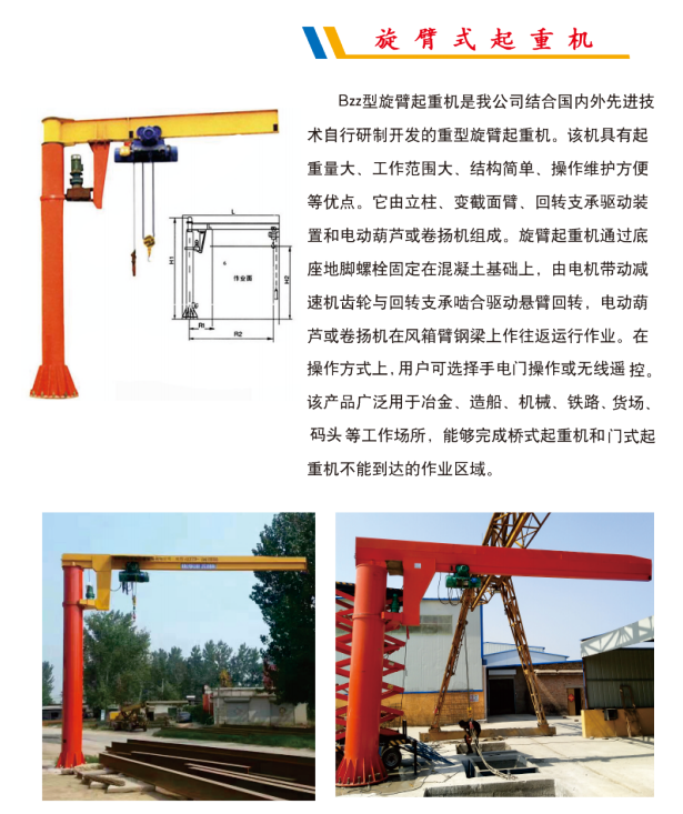 術自行研制開發的重型旋臂起重機。該機具有起