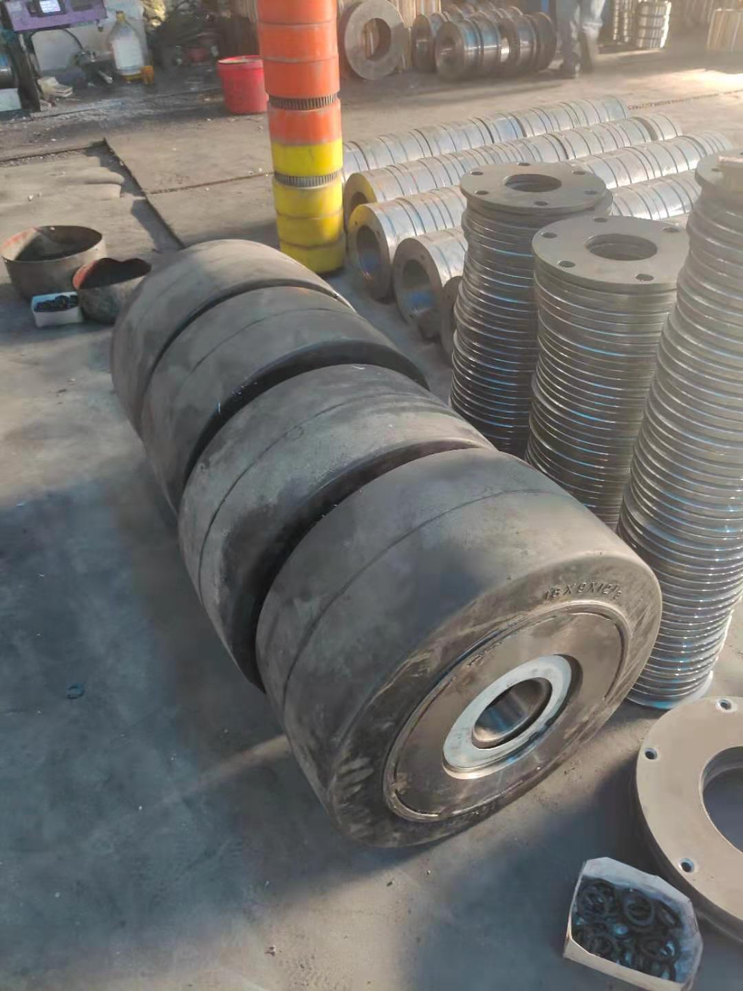 橡膠輪胎:為滿足岸邊集裝箱起重機(jī)的工作要求,取得良好的調(diào)速性能,一般采用直流無級調(diào)速系統(tǒng),各機(jī)構(gòu)采用直流電動機(jī)驅(qū)動。直流電源的供電方式有三種:**種是交流電動機(jī)一直流發(fā)電機(jī)方式,這種方式用得較多,它工作比較可靠,供電電壓基本上不受電網(wǎng)電壓波動的影響,比較穩(wěn)定。缺點(diǎn)是機(jī)組自重大,價格高,噪聲也較大。**種是可控硅整流方式,它的電效率高,調(diào)速性能好,機(jī)組重量輕,占地面積小,維修方便,但要求電網(wǎng)容量較大,電壓波動小。此外,對維修的技術(shù)水平要求高。第三種是柴油機(jī)一直流發(fā)電機(jī)的供電方式,它不受外界電源的影響,提高了集裝箱起重機(jī)的機(jī)動性,特別適用于供電不方便的碼頭,并可節(jié)省供電設(shè)施的**,但這種機(jī)組噪聲很大,柴油機(jī)的維修也較復(fù)雜。