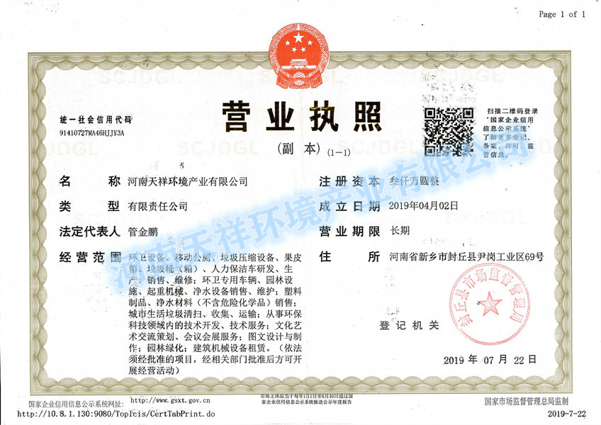 發(fā)證機(jī)構(gòu): | 封丘縣市場監(jiān)督管理局 | 發(fā)證時(shí)間 : | 2019-07-22 |