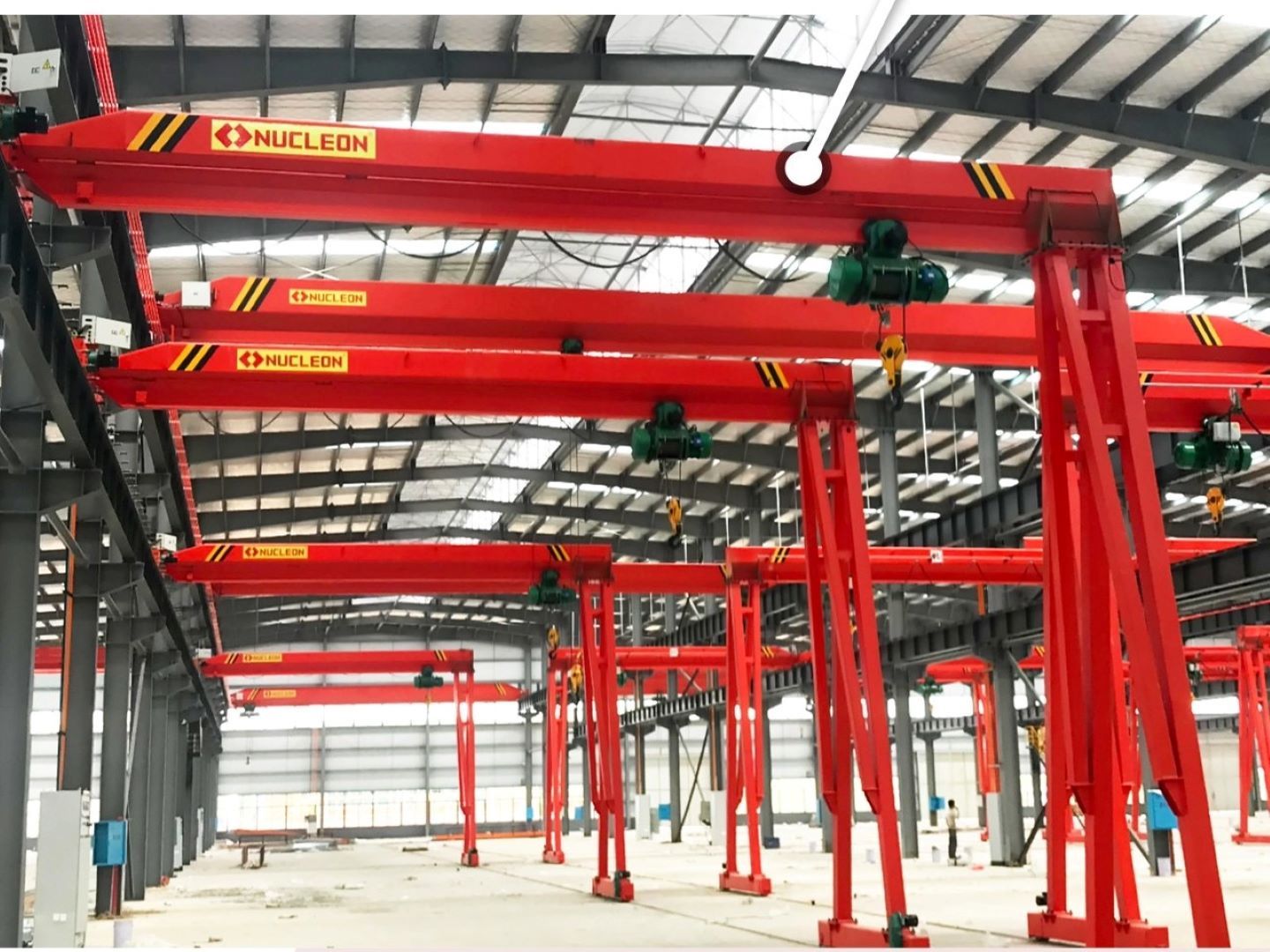 半龍門起重機是介于橋式起重機與龍門起重機之間的一種起重機,半龍門式起重機只有一條支腿,起重機另一端像橋式起重機一樣架在廠房的吊車梁上,架在廠房上的運行軌道俗稱天軌,在地面上的運行軌道稱地軌。半龍門式起重機起升機構、小車運行機構和橋架結構,與橋起重機基本相同。由于跨度大,起重機運行機構大多采用分別驅動方式,以防止起重機產生歪斜運行而增加阻力,甚至發生事故,為防止在強風作用下滑行或翻倒,裝有測風儀和與運行機構聯鎖的起重機夾軌器。半龍門式起重機一般為電動葫蘆式,因此額定起重量通常在16噸以下。單梁半龍門吊式起重機分為電動、門式、懸掛、葫蘆、防爆、橋式等等, 以上是關于歐式單梁起重機廠家,單梁龍門吊起重機價格,單雙梁起重機多少錢的詳細介紹 地區產品: 寧波單梁龍門吊起重機,慈溪單梁龍門吊起重機,余姚單梁龍門吊起重機,象山單梁龍門吊起重機,舟山單梁龍門吊起重機,鎮海單梁龍門吊起重機,北侖單梁龍門吊起重機,鄞州單梁龍門吊起重機,奉化單梁龍門吊起重機,寧海單梁龍門吊起重機。