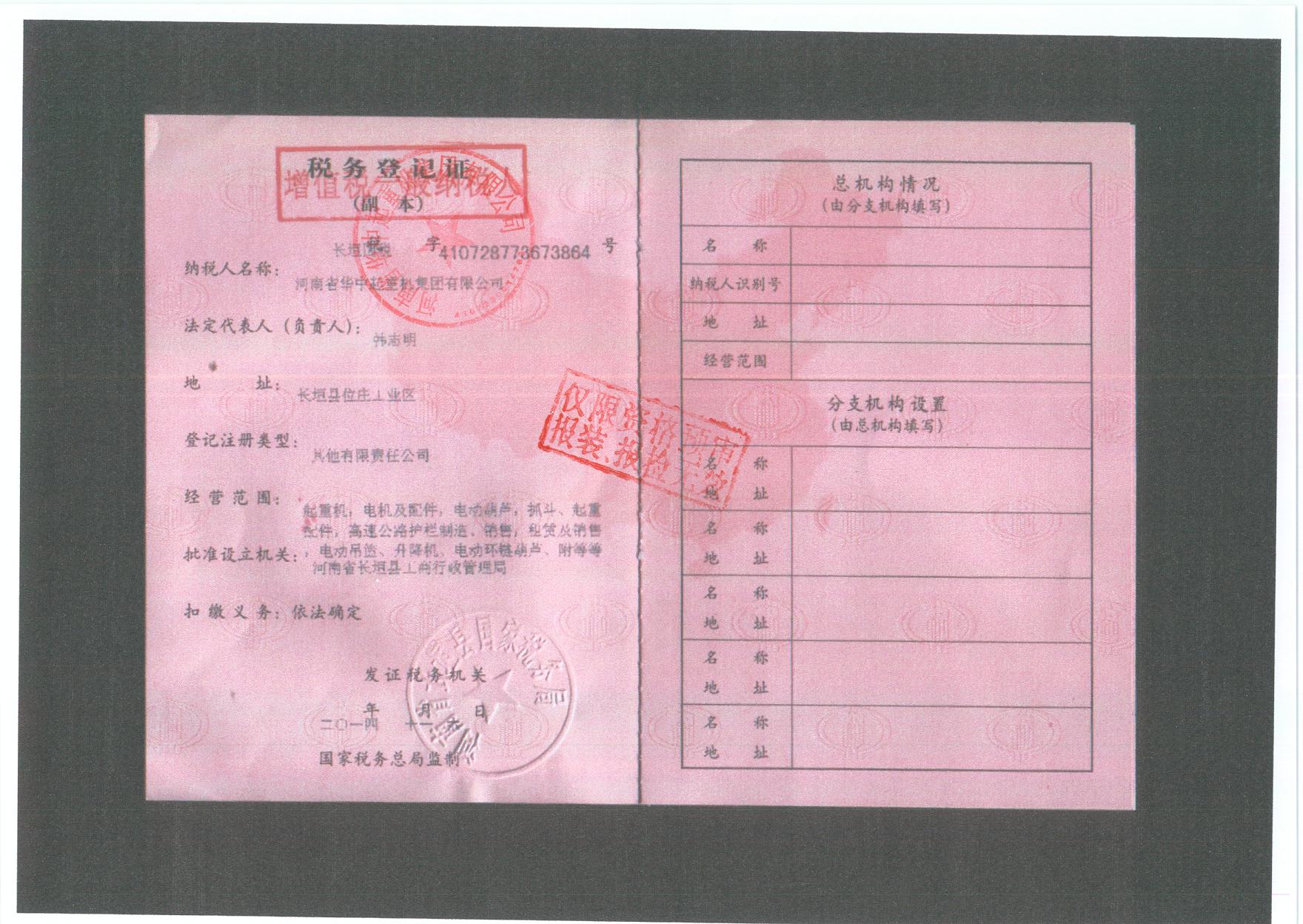 » 稅務登記證