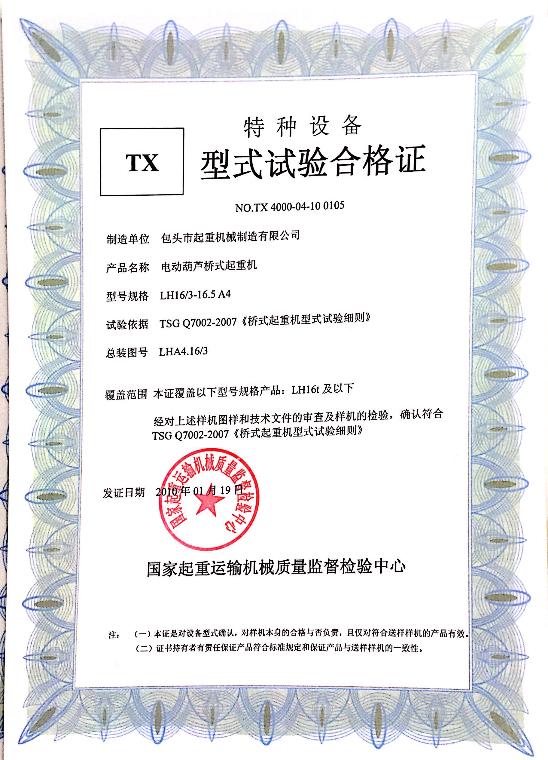 » 特種設備型式試驗合格證