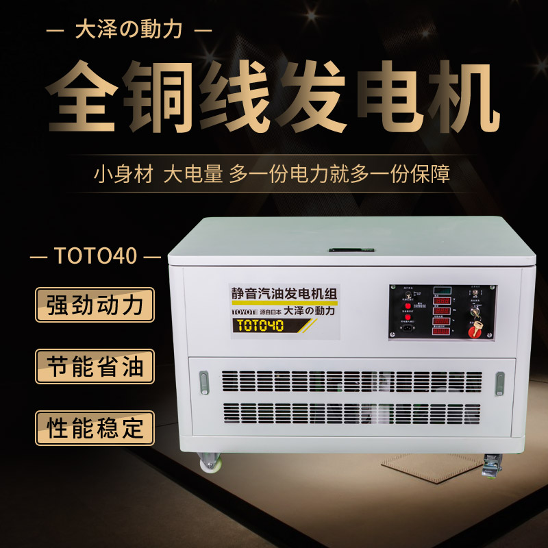 大澤汽油發電機組外形美觀,結構緊湊,具有更高的可靠性和更好的配套適應性,是固定電站、備用電源、高頻航空電站、特種電源等新型電站的較理想的配套動力。產品具有高排放標準、高經濟性、高穩定性、高可靠性、體積小、重量輕、油耗低、功率高、工作可靠,配件供應及維修方便等特點,采用電子調速器,具有冷卻水溫過高、機油壓力低及超速報警并自動停車等保護功能。