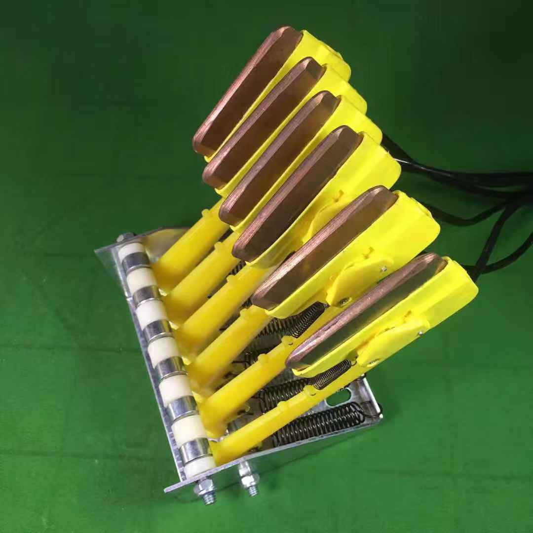 機(jī)械結(jié)構(gòu)的張力裝置決定集電刷與導(dǎo)軌的滑動接觸壓力和機(jī)構(gòu)的穩(wěn)定性,集電刷則是導(dǎo)軌滑動接觸拾取電能的導(dǎo)體,它的性能和導(dǎo)電質(zhì)量以及材料結(jié)構(gòu)成分的優(yōu)劣,將直接影響整個系統(tǒng)設(shè)備的安全運(yùn)行質(zhì)量。