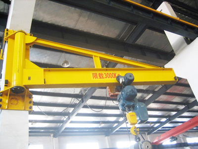 旋臂起重機是近年來發展起來的中小型吊運設備。額定起重量為0.25~10t,其結構獨特、安全可靠,具有高效、節能、省時、省力、靈活的特點。且能在三維空間內隨意操作,特別是在短距、密集性吊運的場合更能顯示出比其它常規性吊運設備獨有的優越性。廣泛應用于車間、倉庫、碼頭等固定場所。