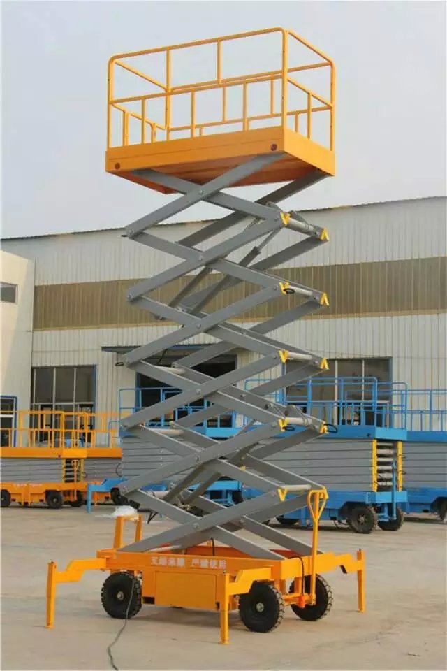 液壓升降機 [1]  主要是通過液壓油的壓力傳動從而實現升降的功能,它的剪叉機械結構,使升降機起升有較高的穩定性,寬大的作業平臺和較高的承載能力,使高空作業范圍更大、并適合多人同時作業。它使高空作業效率更高,安全更保障。