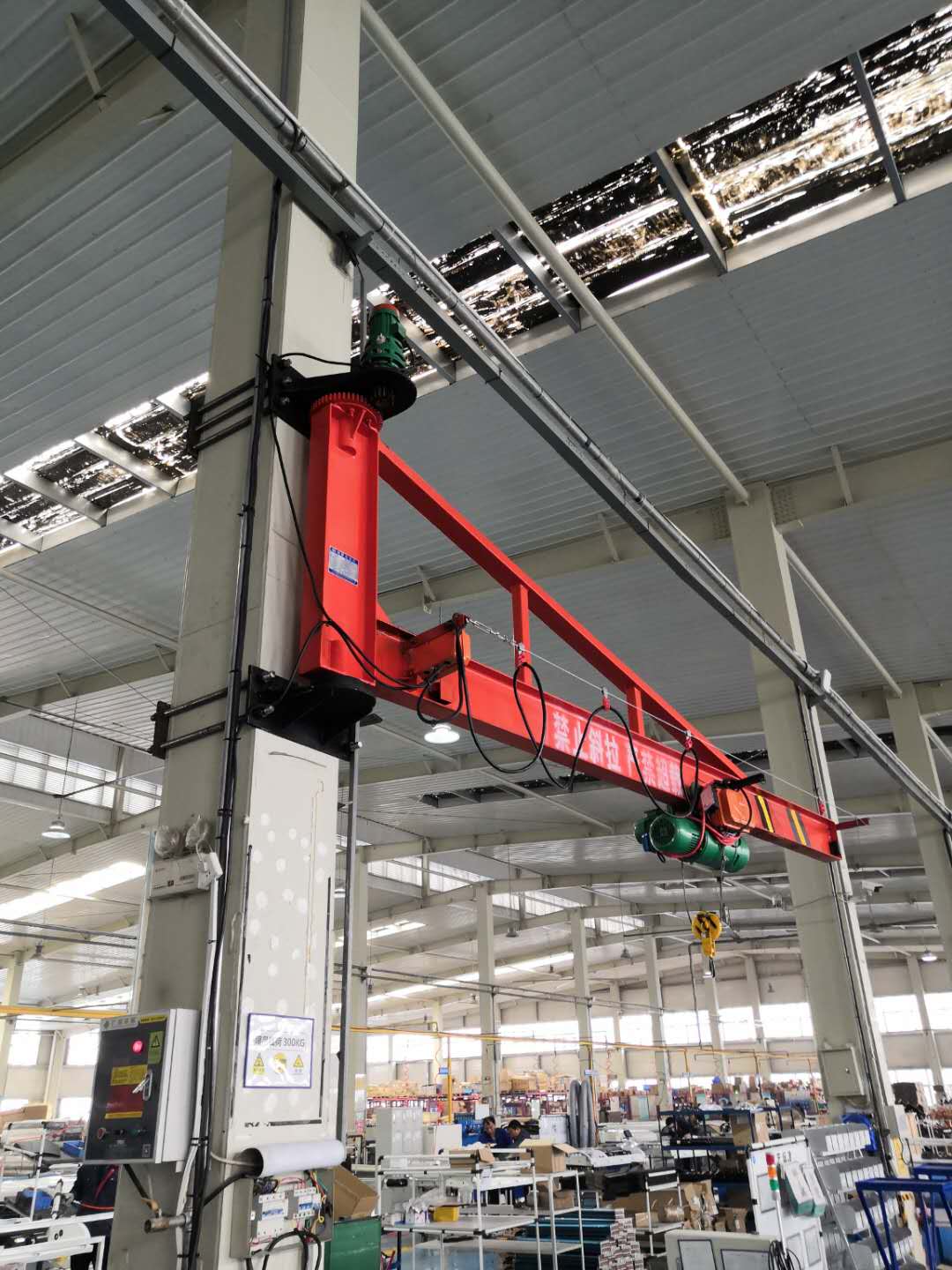 墻壁式旋臂起重機(又稱:壁柱式懸臂起重機,壁柱式懸臂吊,壁柱式旋臂吊,墻壁吊,墻壁式懸臂起重機)根據用戶需要設計的專用起重設備。具有結構新穎、合理、簡單、操作使用方便、回轉靈活、自重輕、載荷移動靈活等優點,是節能高效的物料吊運裝備。可廣泛利用于廠礦、車間的生產線、裝配線和機床的上下活及倉庫、碼頭等場合的重物吊運。