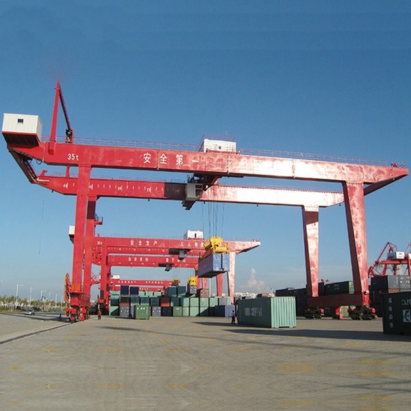 - 裝卸貨物:門式起重機主要用于室外貨場、堆場和散貨的裝卸,其金屬結構像門形框架,承載主梁下安裝兩條支腳,能夠直接在地面的軌道上行走,主梁兩端具有外伸懸臂梁,使得它具有較高的場地利用率和廣泛的作業范圍。