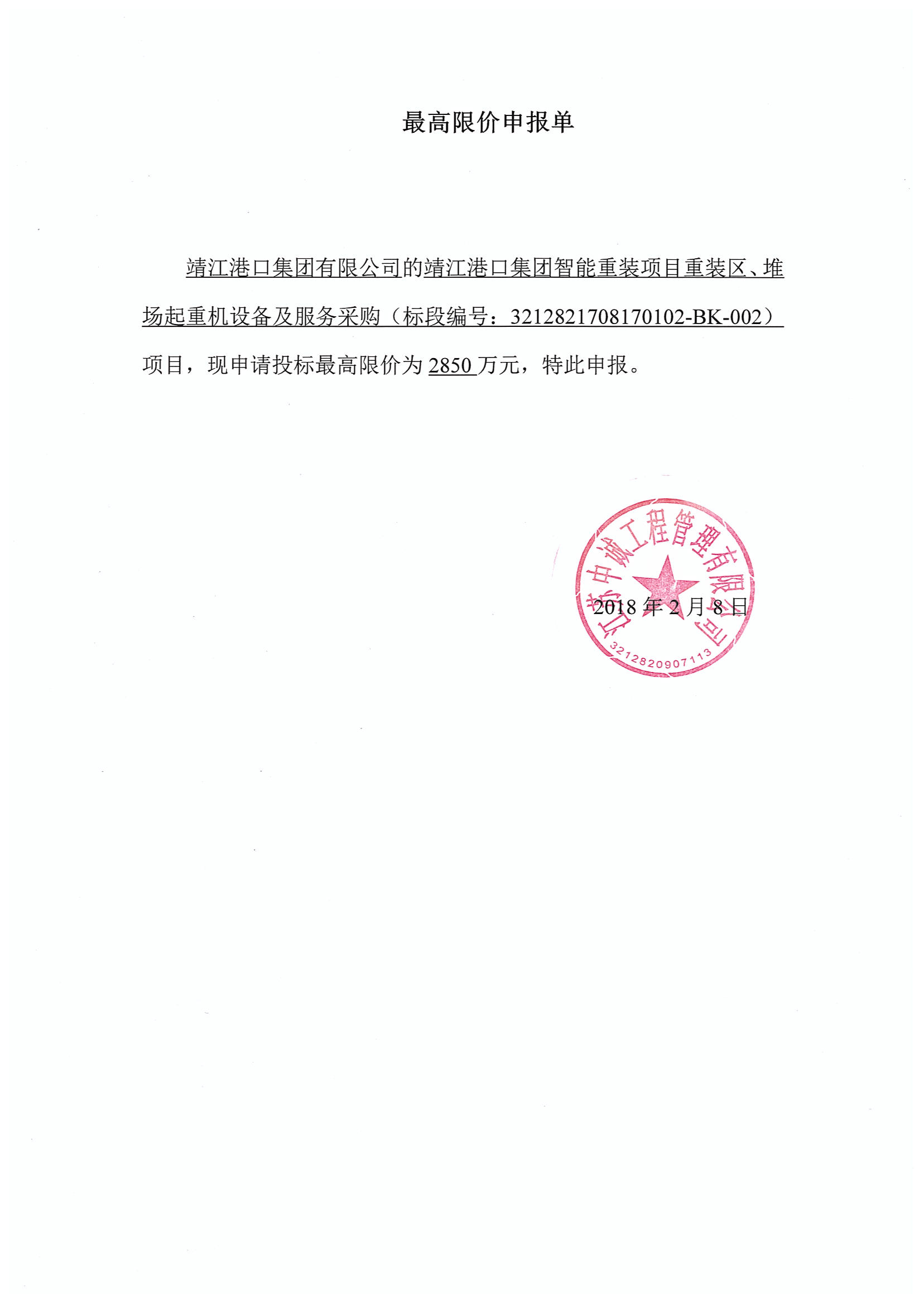 靖江港口集團有限公司智能重裝項目的最高限價公示