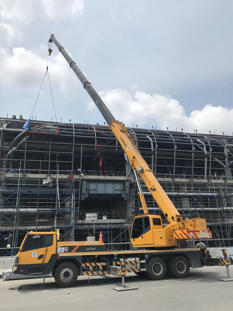 中國(guó)建筑集團(tuán)有限公司作為中國(guó)建設(shè)企業(yè)的代表,對(duì)施工設(shè)備的要求極為嚴(yán)格,其多年來,一直與柳工保持著良好的合作關(guān)系,在多項(xiàng)大型工程中強(qiáng)強(qiáng)聯(lián)合。2016年,柳工TC250A4汽車起重機(jī)從眾多設(shè)備中脫穎而出,成功跟隨中國(guó)建筑投入到素萬(wàn)那普機(jī)場(chǎng)2期工程——機(jī)場(chǎng)T2航站樓的建設(shè)中來,主要承擔(dān)吊裝預(yù)制板和候機(jī)樓地板鋪設(shè)工作。在高強(qiáng)度,高負(fù)荷的運(yùn)轉(zhuǎn)下,柳工起重機(jī)憑借卓越的性能,超高的施工效率,零故障得到客戶的高度贊揚(yáng),始終是該項(xiàng)目施工的吊裝主力。