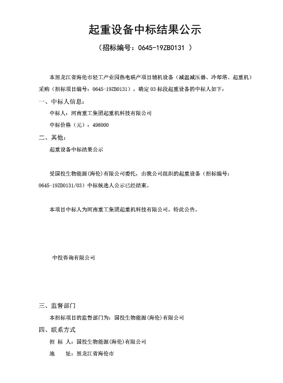 起重設備中標公示