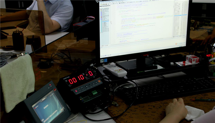 工程師正在對風(fēng)速傳感器的電路與程序進(jìn)行設(shè)計(jì)和測試