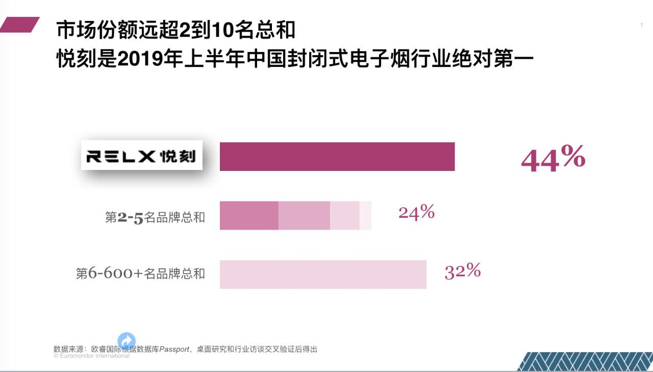 樂收生意寶訊:成為服務(wù)全球用戶的知名品牌,一直是很多創(chuàng)業(yè)公司的愿景和目標(biāo)。從蘋果、華為、GE和寶潔,到阿里巴巴和騰訊,都成為了全球知名的品牌。目前,在炙手可熱的電子煙行業(yè)中,已走出一個蜚聲全球的品牌RELX悅刻。歐睿國際數(shù)據(jù)顯示,RELX悅刻在中國封閉式電子煙行業(yè)市場占有率高達(dá)44%,遠(yuǎn)超2-10名的總和,成為當(dāng)之無愧的中國電子煙第一品牌。