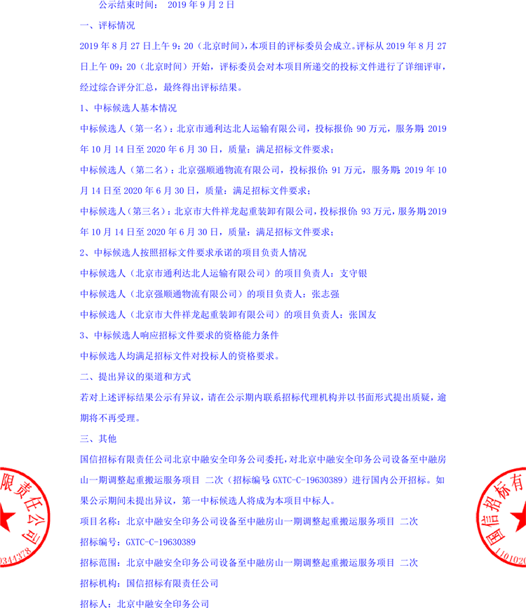 移動(dòng)版:北京中融安全印務(wù)公司設(shè)備至中融房山一期調(diào)整起重搬運(yùn)服務(wù)項(xiàng)目 二次評(píng)標(biāo)結(jié)果公示