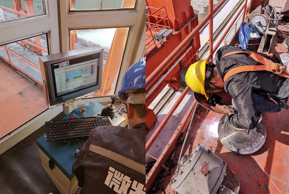 施工過程中,由于尾水門機抓梁不能落到地上,安裝過程中全程都是高空作業(yè),這無疑也加大了施工難度。而且,安裝期內恰逢當地多雨天氣,為了不延誤工期,售后工程師們時常要冒雨施工。雖然過程中困難較多,但均被一一克服解決,項目有序推進。