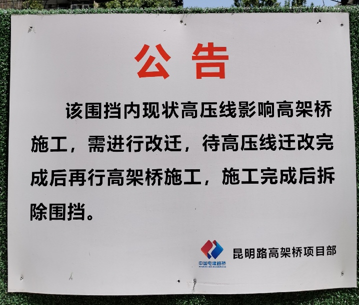 昆明路高架橋項目部圍擋公告。新華網發