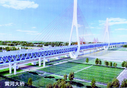 根據道路總體方案,橋梁工程包括零點立交段主線高架橋、華山北公軌合建高架橋、公軌合建黃河大橋及北大堤外引橋共四段。其中,高架橋分為兩種,一種直接與現狀二環東高架相接,為雙向六車道一級公路兼城市快速路;另一種為公軌合建高架橋,上下橋面分層設置。