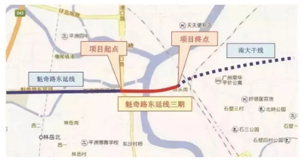 番海大橋位于三山新城南側,毗鄰廣州南站,是南海、番禺兩區開建的第二座“牽手橋”。大橋呈東西走向,起于魁奇路與港口路交叉口,跨越陳村水道,與廣州市南大干線相接。