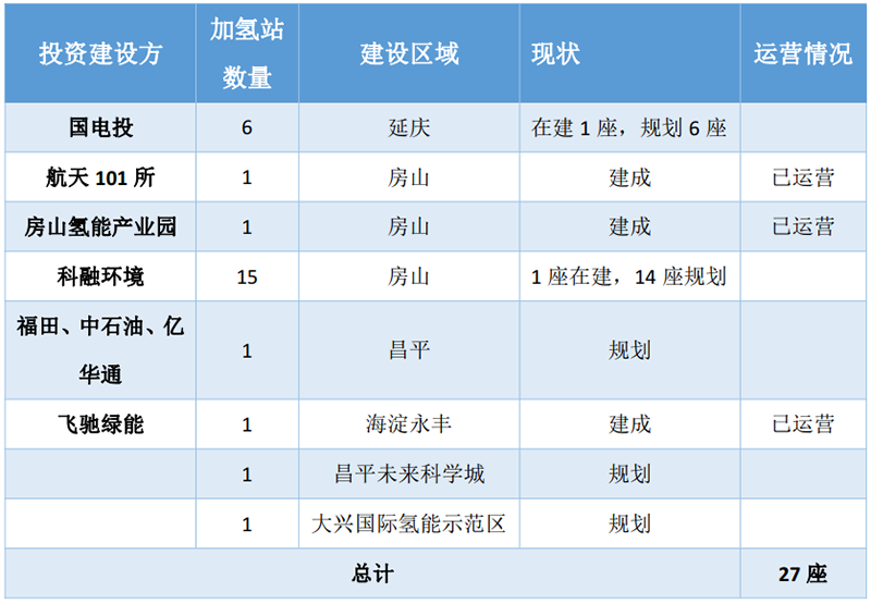 加氫站是氫能產業發展的基礎,作為2022年冬奧會核心舉辦城市,加氫站的建設開展非常迅速。