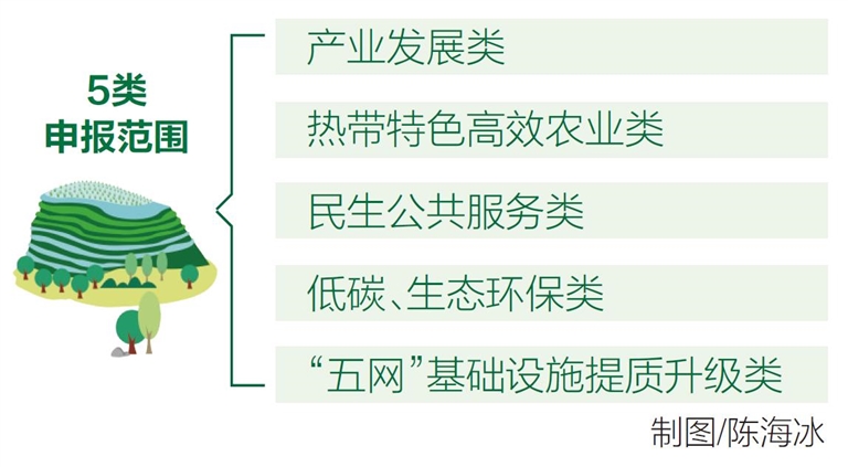 根據(jù)省發(fā)改委披露的信息,2021年省重點(diǎn)項(xiàng)目申報(bào)范圍包括5大類。其中,產(chǎn)業(yè)發(fā)展類,包括旅游業(yè)、現(xiàn)代服務(wù)業(yè)、高新技術(shù)產(chǎn)業(yè)等產(chǎn)業(yè)項(xiàng)目;熱帶特色高效農(nóng)業(yè)類,包括農(nóng)業(yè)觀光公園、特色農(nóng)業(yè)種植基地、全球動植物種質(zhì)資源引進(jìn)中轉(zhuǎn)基地、海洋牧場、中心漁港、南繁科研育種基地、高標(biāo)準(zhǔn)農(nóng)田建設(shè)等;民生公共服務(wù)類,包括學(xué)校、醫(yī)院、疾控中心、文體中心、安置區(qū)工程、社會管理信息化平臺等;低碳、生態(tài)環(huán)保類,包括垃圾焚燒發(fā)電廠、污水處理廠、新能源汽車和節(jié)能環(huán)保汽車的研發(fā)制造及應(yīng)用、海洋新能源、設(shè)備制造、新型材料、環(huán)保建材等。(來源: 海南日報(bào) 記者梁振君)