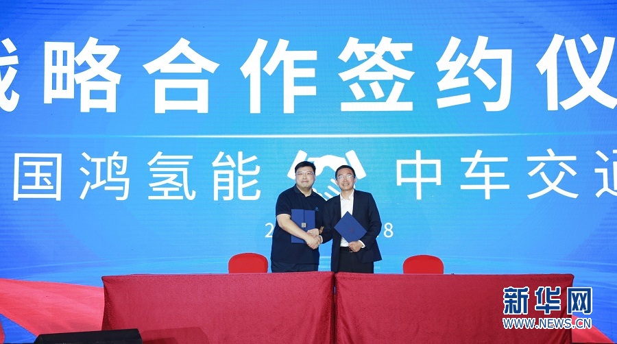 發布會上,國鴻氫能與中車交通進行了戰略合作簽約。新華網發