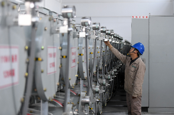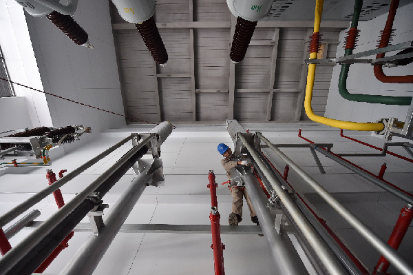 10月26日,天津送變電工程有限公司工作人員在進行設備檢查。