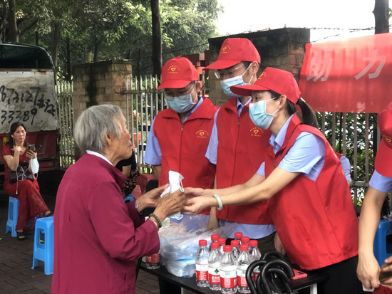 圖為中建交通四川公司志愿者在為孤寡老人發放防疫用品等。