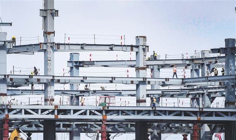 日前,在海口江東新區(qū)起步區(qū)的海南國際能源交易中心大廈項(xiàng)目,各種作業(yè)車輛和施工人員在忙碌著對項(xiàng)目鋼結(jié)構(gòu)主體進(jìn)行組裝。目前該項(xiàng)目地上鋼結(jié)構(gòu)已施工至六層。該項(xiàng)目堅(jiān)持超常規(guī)推進(jìn),24小時(shí)施工,計(jì)劃年底主體結(jié)構(gòu)封頂。海南日報(bào)記者 袁琛 攝
