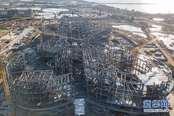 移動版:??趪H免稅城項目免稅商業中心鋼結構框架封頂