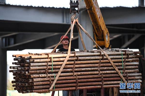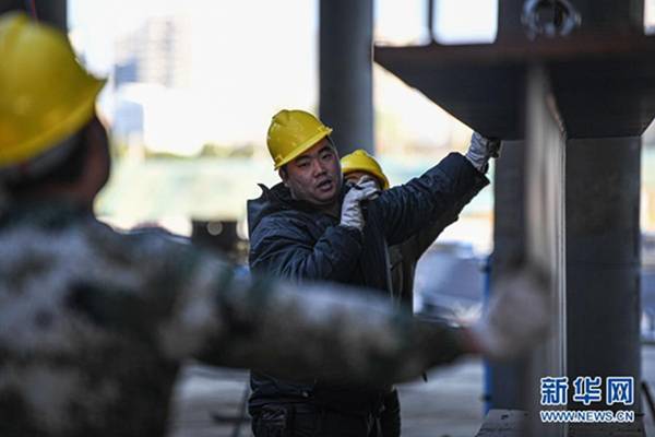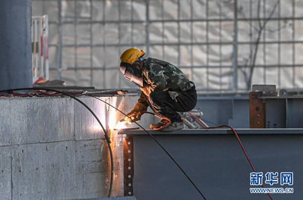 2021年1月1日,工人在??趪H免稅城項目免稅商業中心工地施工。新華社記者 蒲曉旭 攝