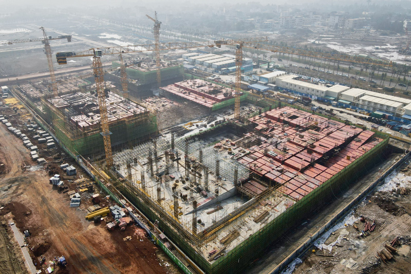 1月23日拍攝的??诮鹑谥行捻?xiàng)目現(xiàn)場(chǎng)(無(wú)人機(jī)照片)。