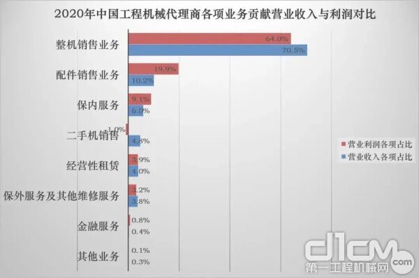 2020年中國工程機械代理商各項業務貢獻收入與利潤情況