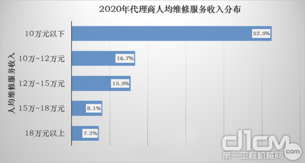 2020年中國工程機械代理商人均維修服務收入分布