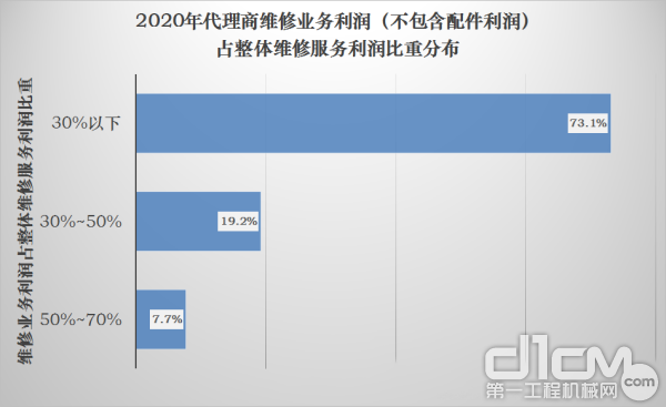 2020年中國工程機械代理商維修業務利潤占整體維修服務利潤比重分布