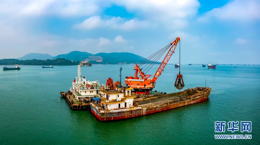 近日,據中鐵廣州工程局集團消息,目前已完成疏浚工程量過半。圖為工作人員在進行作業。新華網發(曾鎧鋼攝)