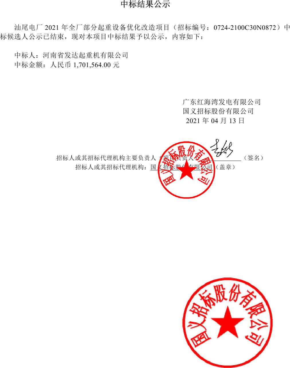 移動版:廣東:汕尾電廠2021年全廠部分起重設備優化改造項目中標結果公告