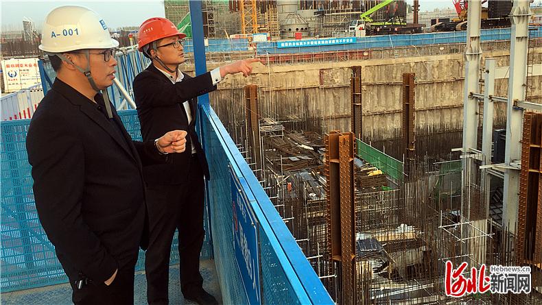 正在施工中的雄安新區(qū)垃圾綜合處理設(shè)施一期工程,采用國內(nèi)首個地下和半地下設(shè)計,使垃圾處理后可實(shí)現(xiàn)煙氣超低排放。圖為項(xiàng)目部管理人員在施工現(xiàn)場進(jìn)行調(diào)度。 河北日報記者張偉亞攝