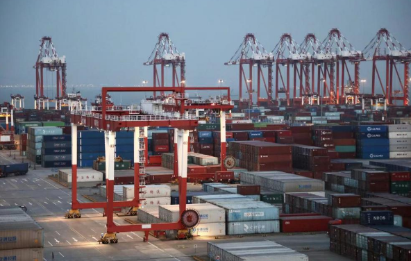 這是4月14日,記者跟隨“沿著高速看中國(廣東)”主題采訪活動時,在南沙港三期碼頭看到的一幕。