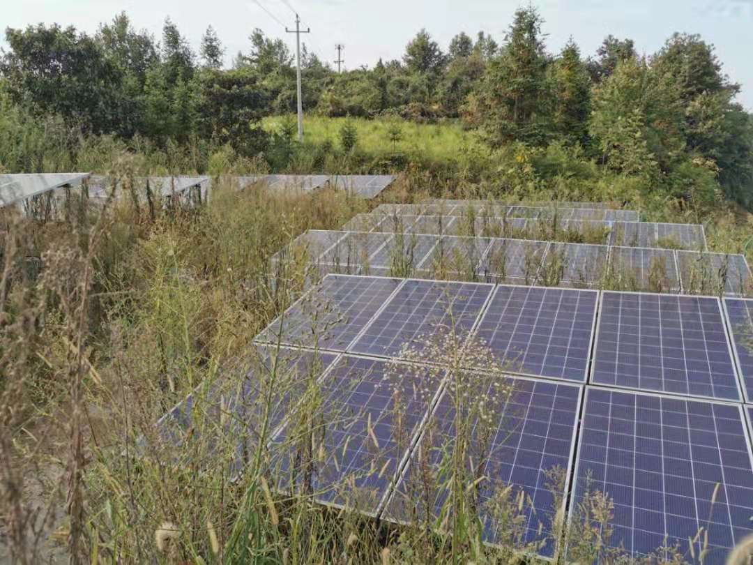 圖:光伏電站人工割草后無法除根,植物生長期一周雜草就重新生長