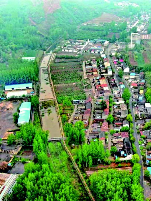 河南省“全國文明村”河口村人工濕地污水流入的燕溝河(4月25日攝,無人機照片)。新華社記者 劉詩平 攝
