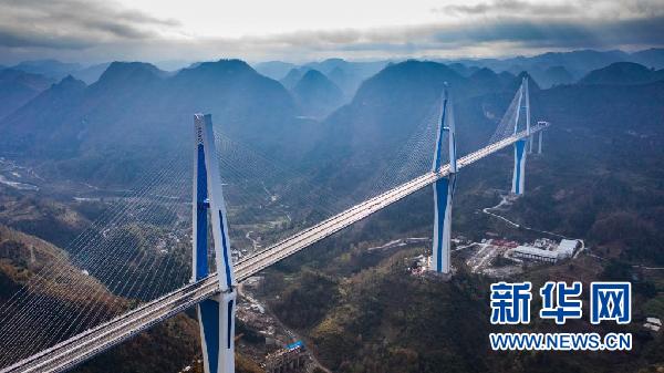 云霧繚繞中的平塘特大橋。新華社記者劉續攝