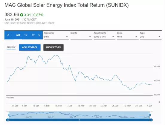供應鏈的浮動和各種成本上漲已經波及到了資本市場,五月上旬,(詳情點擊:原材料漲價致美國光伏股暴跌,Sunworks、Array Technologies跌幅超40%),最近幾周,MAC全球太陽能指數自年初至今跌幅超24%。