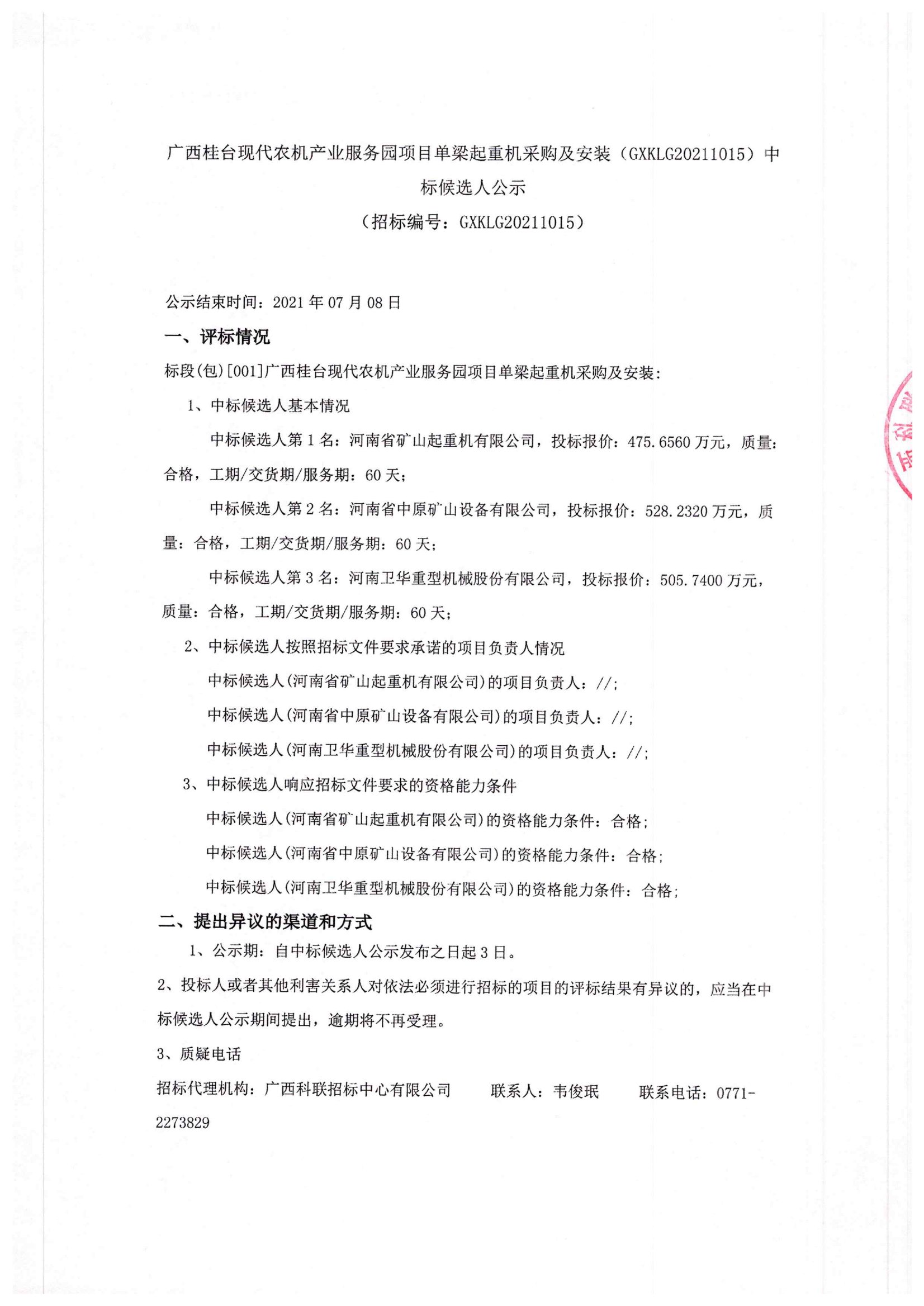 移動版:廣西;單梁起重機采購及安裝中標候選人公示