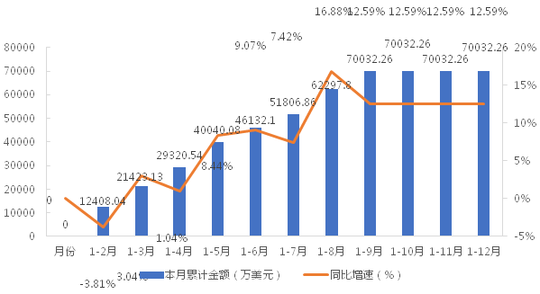 2024年1-12月我國履帶式起重機(jī)累計出口金額及同比增速
